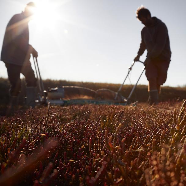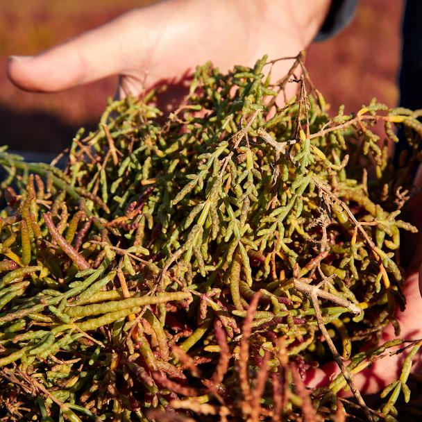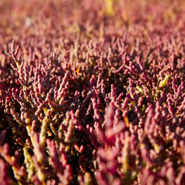 SALICORNE La salicorne est une plante comestible de bord de mer très répandue sur les côtes de la Manche (France) qui pousse dans le sable. Quasiment immergée à marée haute, elle est exposée au vent et au soleil à marée basse. Pour s’adapter à ces variations quotidiennes de son environnement, elle a développé des transporteurs d’eau et d’ions ammonium qui jouent un rôle primordial dans la protection contre la déshydratation et les fortes variations en sels.